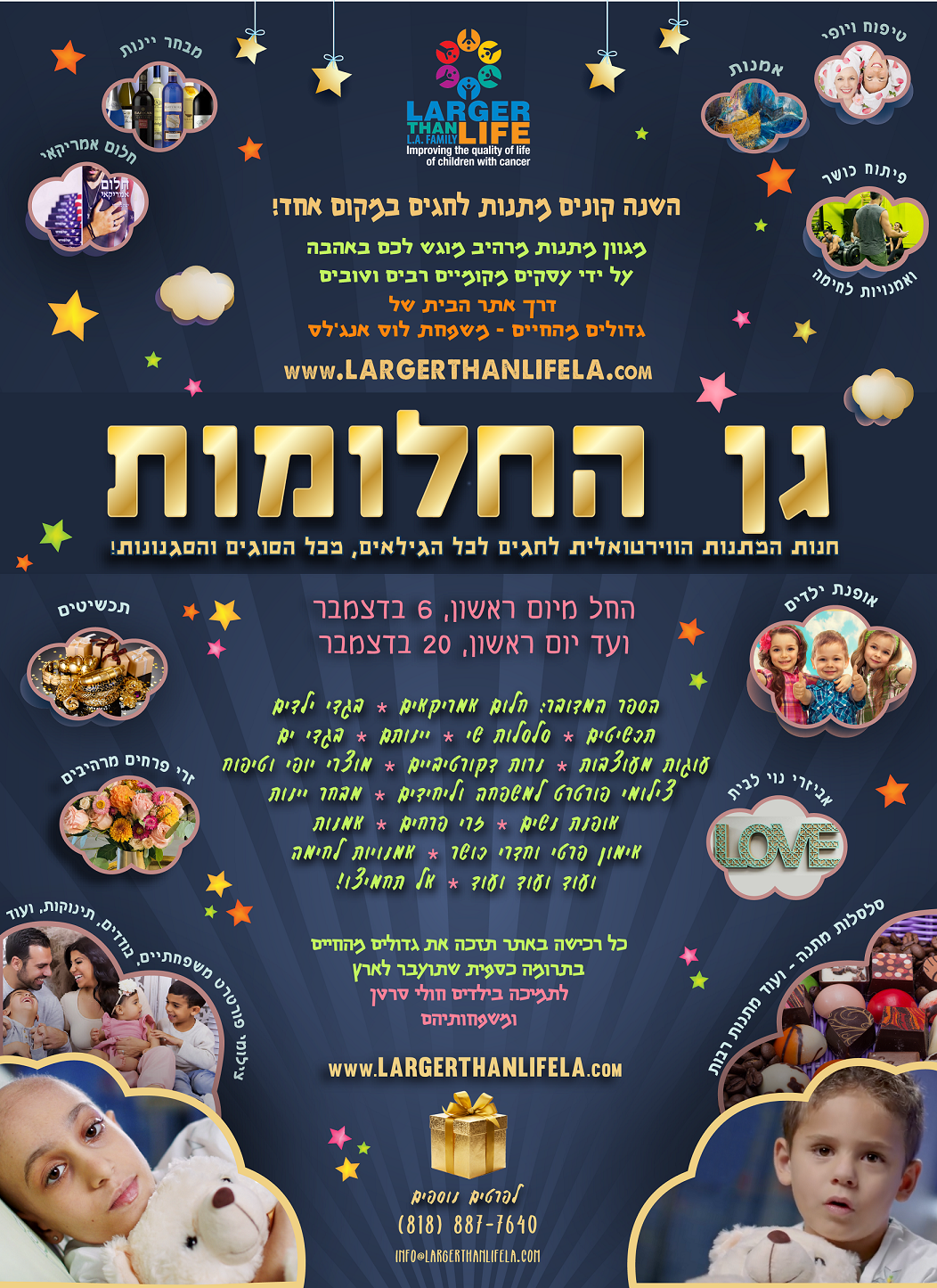 הקמפיין של גדולים מהחיים - משפחת לוס אנג׳לס תפס כמו אש בשדה קוצים – כל בעל עסק שהוזמן להשתתף מפה לאוזן הודה לנו מעומק ליבו על השיתוף והמליץ על עסקים נוספים, ההירתמות של בעלי עסקים מרחבי הקהילה פשוט מחממת את הלב. ההזדמנות להתאחד, למכור מתנות לאנשי הקהילה ולהקדיש חלק נכבד מהרווחים כתרומה לילדי גדולים מהחיים בארץ המתמודדים עם מחלת הסרטן, שלא עושה הנחות גם בתקופת הקורונה, המערימה קשיים גדולים נוספים על כל משפחה שמתמודדת גם כך עם אתגרי מחלת הסרטן הקשוחים מדבקים ממש.