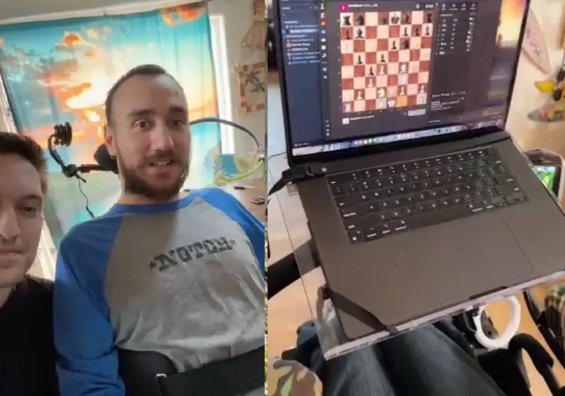 "הכל נעשה עם המוח שלי. אם כולכם יכולים לראות את הסמן נע על המסך, זה הכל אני", אמר בזמן שהשידור החי הראה את הסמן נע על פני משחק שחמט מקוון.