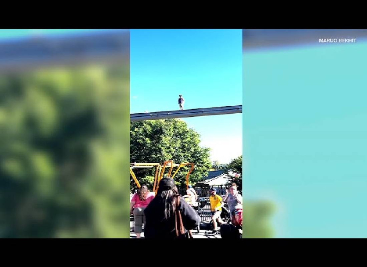 בסרטון ניתן לראות המונים מתאספים מתחת לפסים ומנסים להנחות אותו בבטחה. צעקות חרדה נשמעו ברקע: "הוא ייפול!" ו"מישהו חייב לעזור לו!".