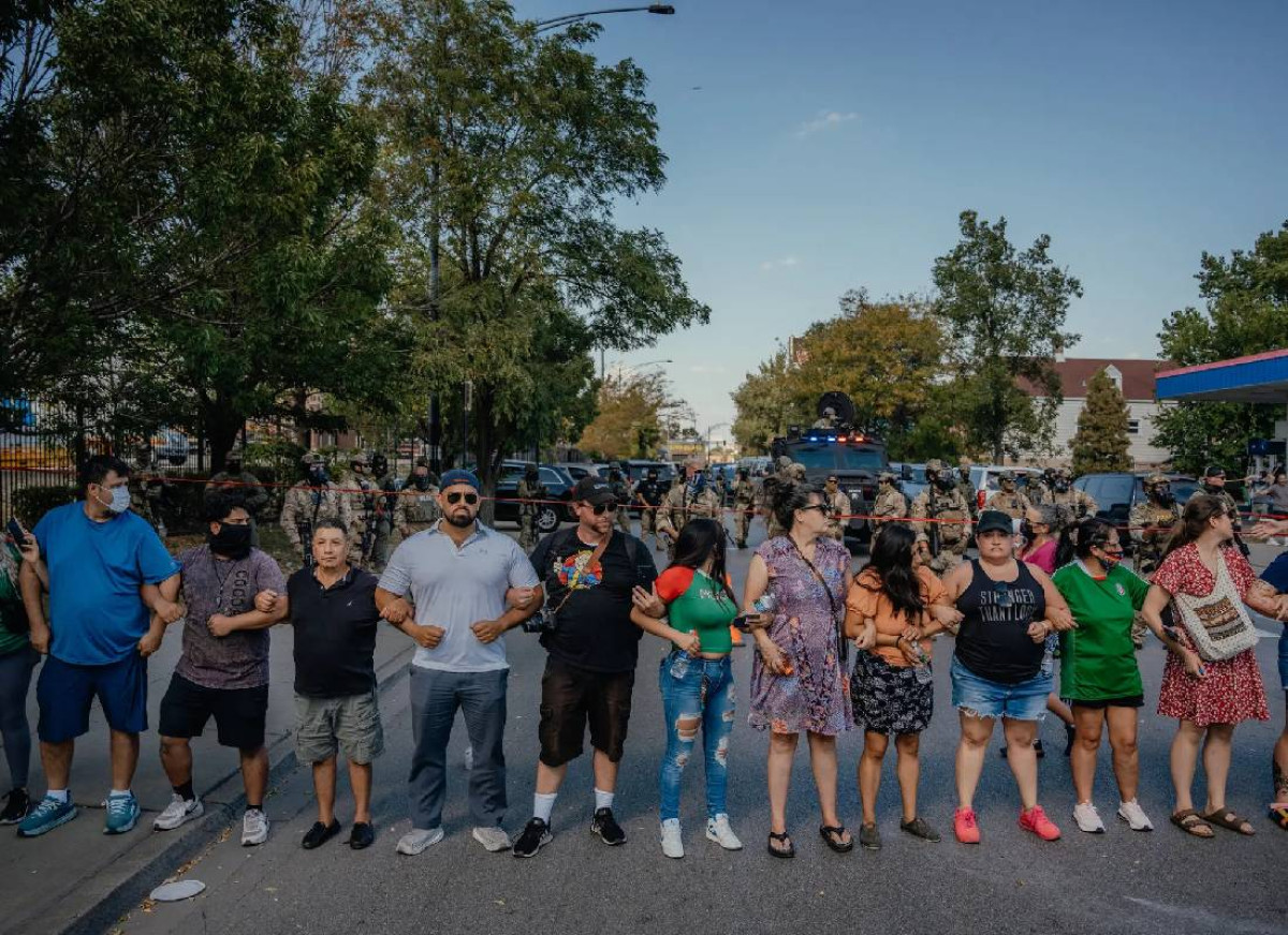 ביום שבת יצאו תושבים לרחובות שכונת סאות'ווסט סייד בעקבות תאונת דרכים שבה היו מעורבים סוכנים פדרליים ושני נהגים מקומיים. לפי משרד ביטחון המולדת, הנהגים רדפו אחר הסוכנים בפזיזות. סוכני ההגירה השיבו בירי של כדורי פלפל ובשימוש בגז מדמיע, וההמון הזועם, מנופף שלטים נגד רשות ההגירה, נותר במקום עד שעזבו.