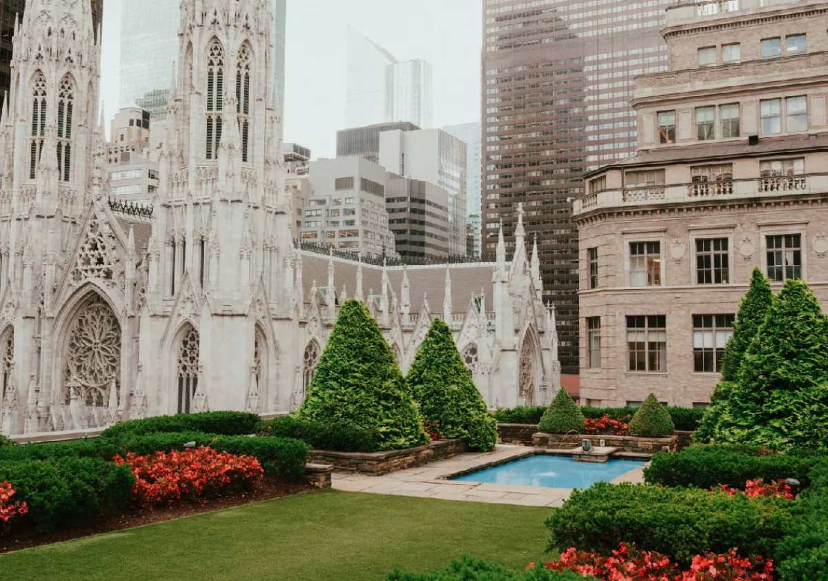 שלוש הגינות, הממוקמות סביב רוקפלר פלאזה ופיפת' אווניו, כוללות צמחייה מטופחת, שבילי הליכה מפותלים, יצירות אומנות ובריכת השתקפות - כולן משקיפות ישירות על קתדרלת סנט פטריק. לפי תיאור הפסטיבל, מדובר ב"אחת ההתבוננויות העירוניות האיקוניות ביותר בניו יורק: הצריחים הנאו־גותיים של סנט פטריק הנישאים מעל השדרה על רקע גורדי השחקים המודרניים של מנהטן".