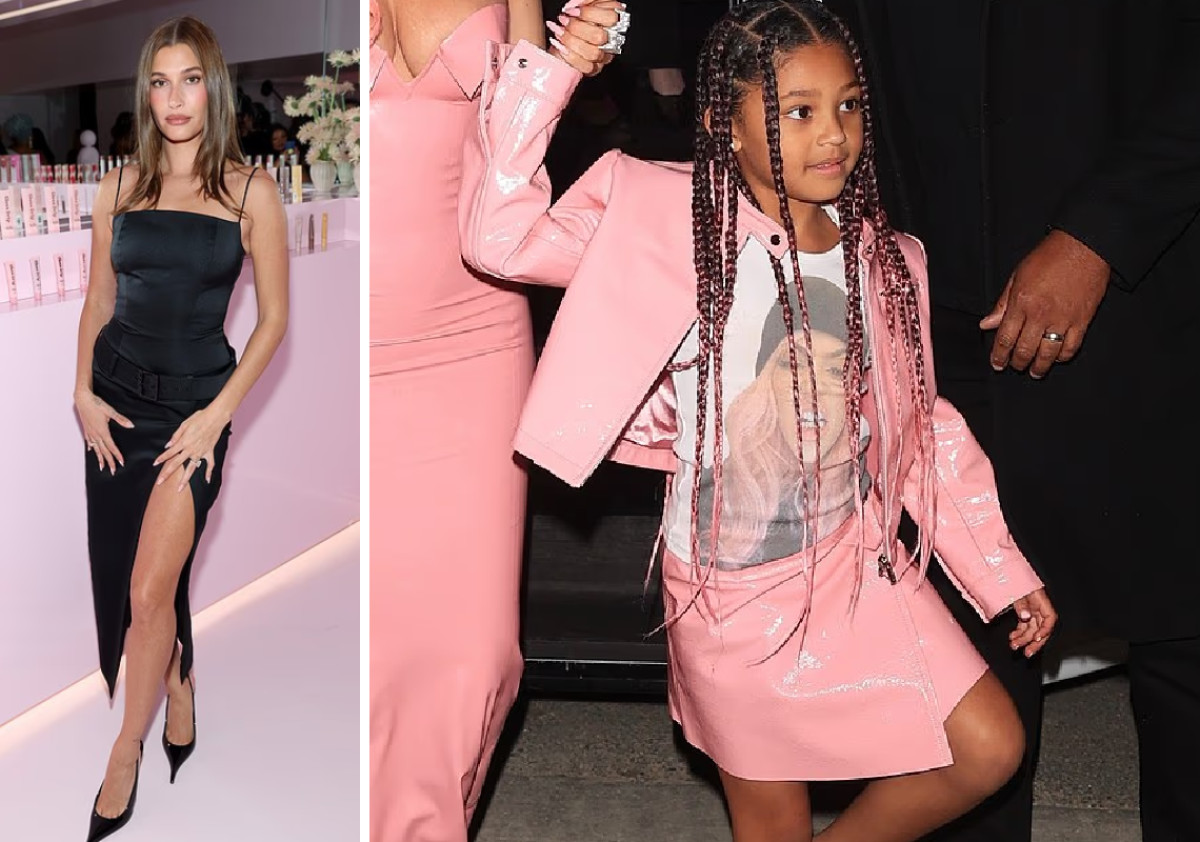 סטורמי הקטנה לובשת חולצה עם תמונה של אמא קיילי, והיילי ביבר