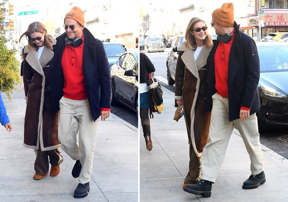 חדיד, בת 30, בחרה בלוק סתיוי נינוח עם מעיל שאגי ומכנסיים רחבים, והפתיעה במראה טבעי וללא איפור. קופר בן ה-50 נראה רגוע כהרגלו עם חולצה אדומה, כובע כתום, מכנסי צ'ינו ומעיל. הצמד נראה מאוהב ומרוצה, ימים ספורים בלבד אחרי שהדוגמנית כבשה את המסלול בתצוגת ויקטוריה'ס סיקרט.