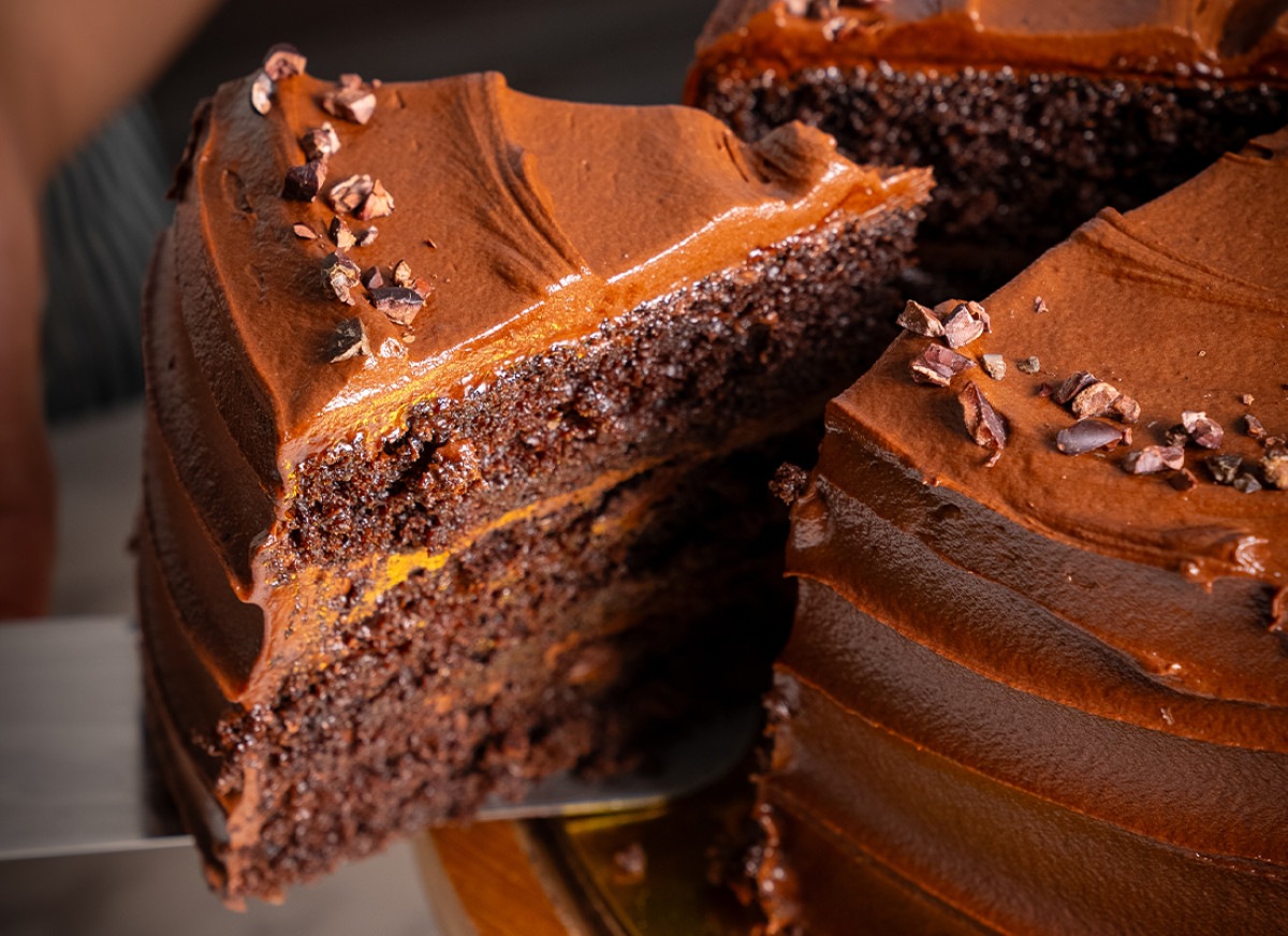 מספיק ביס בודד מהעוגה הזאת כדי להבין מדוע נבחרה לעוגת השוקולד הטובה בלוס אנג׳לס. עם 3 שכבות ממולאות בשוקולד פדג׳ באטר קרים עם מילוי וציפוי -רכה מבפנים, עשירה בקרם שוקולד סמיך שנמס על הלשון ומציג ניחוח עמוק של קקאו איכותי שממלא את האוויר עוד לפני שחותכים את הפרוסה הראשונה.
