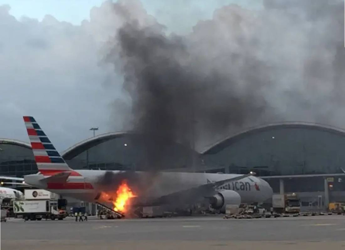מטוס של חברת אמריקן איירליינס עולה באש ב2017. גם זה לא הוסיף לחוויית הטיסה.