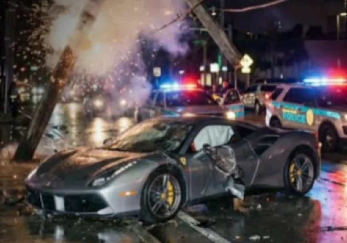 הפרארי הגנובה בשווי 400 אלף דולר התרסקה בעמוד חשמל