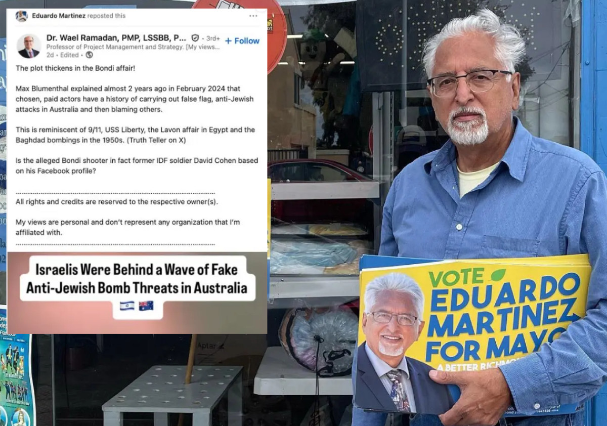 ראש העיר אדוארדו מרטינז שיתף פוסט אנטישמי שטוען כי הפיגוע בבונדי ביץ' באוסטרליה היה מבויים