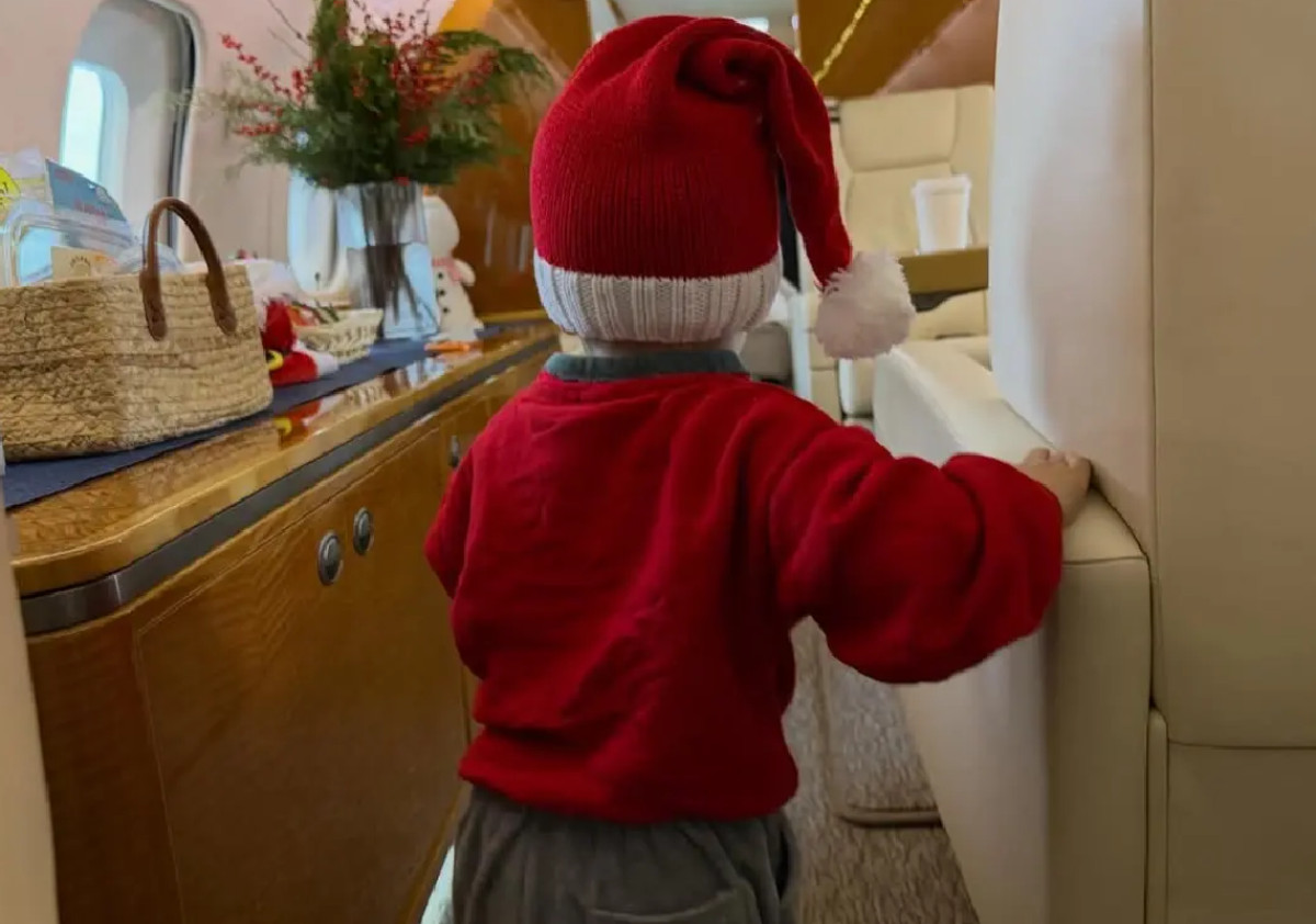 הזמר בן ה־31 פרסם באינסטגרם סדרת צילומים מתוקים שבהם ג'ק נראה מחופש לסנטה קלאוס קטן, עם כובע אדום קלאסי, סוודר חמים אדום ומכנסי טרנינג אפורים, כשהוא מתהלך במטוס פרטי שעוצב באווירת חג עם בובת שלג וזר פרחים חורפי.
