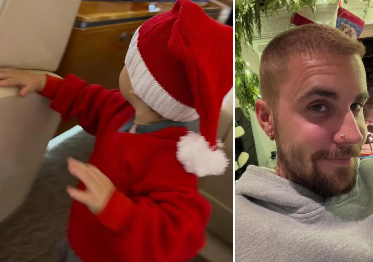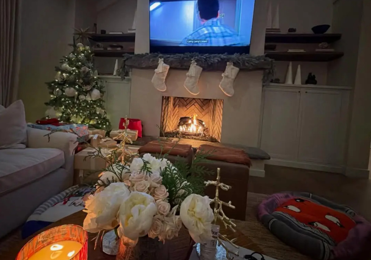 ביבר שיתף גם תמונה ביתית של אח עם שלוש גרביים סרוגות תלויות - כנראה שלו, של היילי ושל ג'ק - לצד עיצוב חג מולד קלאסי ומוקפד.