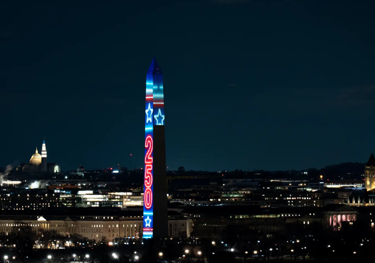 מאחורי המהלך עומד ארגון Freedom 250, עמותה שהוקמה החודש ביוזמת נשיא ארצות הברית דונלד טראמפ, ואחראית על שורת אירועים לאומיים וחגיגיים שיימשכו לאורך כל השנה הקרובה. בערב השנה החדשה תואר אנדרטת וושינגטון, המתנשאת במרכז ההנשיונל מול, בהקרנות צבעוניות עם דימויים פטריוטיים שמספרים את סיפורה של אמריקה – מהקמתה ועד ימינו.
