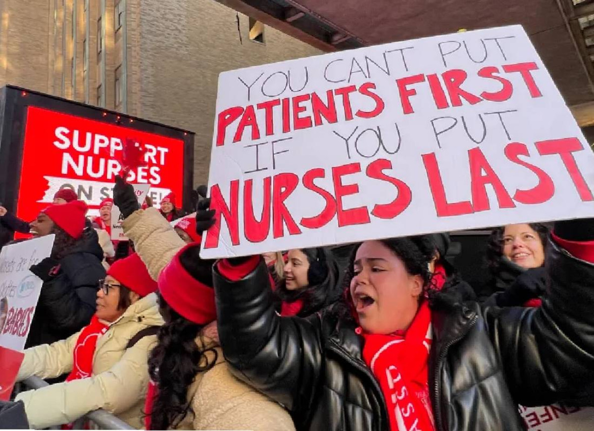 בחוץ, הקור של ינואר לא עצר את ההמונים. עם אור ראשון החלו להתאסף קבוצות גדולות מול מוסדות רפואיים חשובים במנהטן, בברוקלין, בקווינס ובברונקס. בין הבולטים שבהם: המרכז הרפואי הפרסביטריאני ניו יורק–קולומביה בשכונת וושינגטון הייטס במנהטן, שבו נראו קווי מחאה צפופים, שלטים בידיים, ומגאפון שמכתיב את הקצב. במקום שבו ביום רגיל נשמעות הודעות של “קוד כחול” וצעדי צוותים במסדרון, נשמעו לפתע קריאות אחרות: על כבוד מקצועי, על שחיקה, על גבול שנחצה.