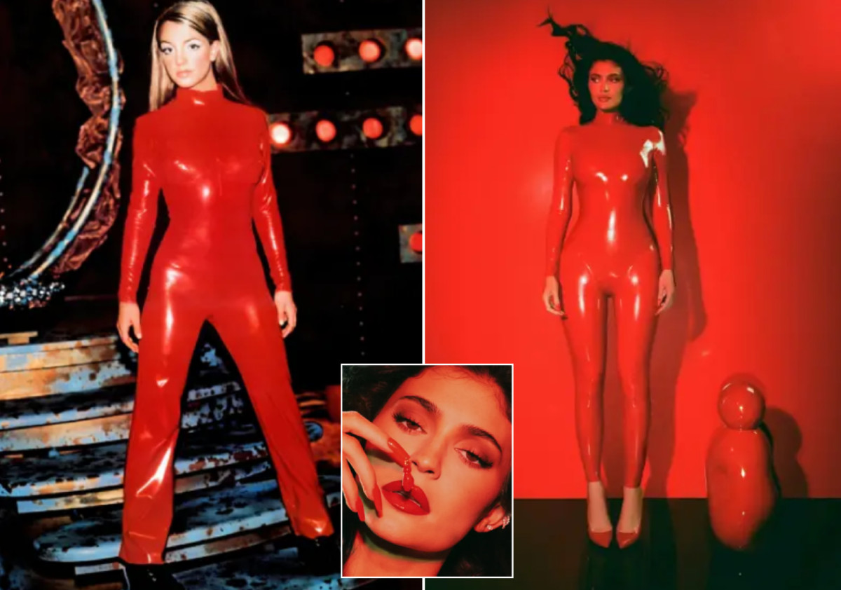 כמו בריטני בזמנה, גם קיילי לבשה בגד גוף צמוד במיוחד, מכף רגל ועד צוואר, כולו לטקס אדום מבריק שהזכיר את הקליפ המיתולוגי של "Oops! I Did It Again". את התמונות היא פרסמה באינסטגרם במסגרת הקמפיין לבושם החדש מבית Kylie Cosmetics, שנקרא Cosmic Intense, שתיארה כ"גירסה עמוקה, חמה וממכרת יותר" של הבושם הקודם - בדיוק בזמן לוולנטיין הקרוב.