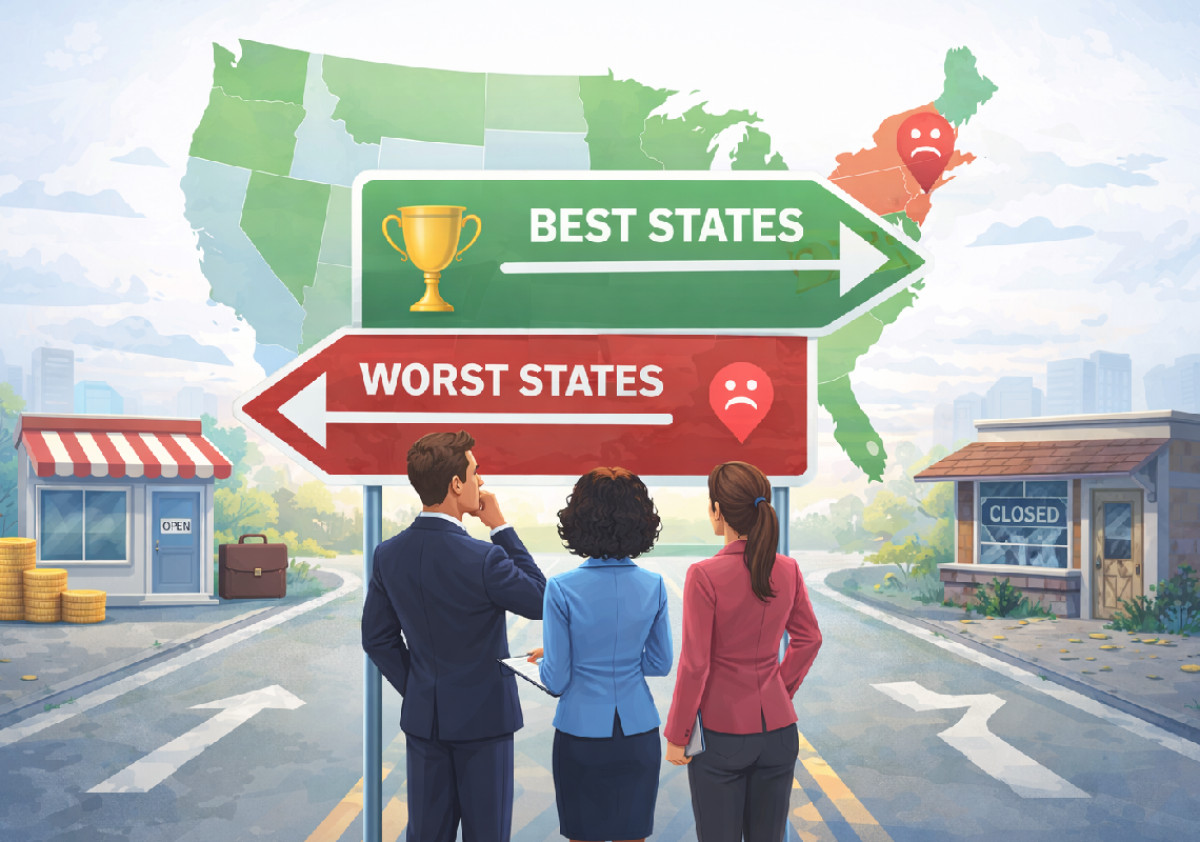 פלורידה דורגה כמדינה הטובה ביותר לפתוח בה עסק, בעוד שרוד איילנד נמצאת במקום האחרון