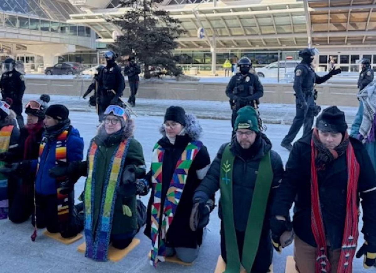 הרבנית אמה קיפלי־אוגמן, כומרת יהודית ובין־דתית במכללת מקלסטר שבסנט פול, נעצרה לאחר שעמדה עם קבוצת מנהיגי דת באזור שערי ההגעה של שדה התעופה, כשהם אוחזים ידיים, שרים תפילות ועוטים טליתות. בתיעוד מהאירוע נראית קיפלי־אוגמן כשהיא לובשת טלית בצבעי הקשת, נושאת דברים קצרים לקהל — ולאחר מכן נאזקת ומובלת על ידי שוטרים. המעצר בוצע ללא אלימות, אך לעיני נוסעים רבים, והפך לסמל המרכזי של יום המחאה.