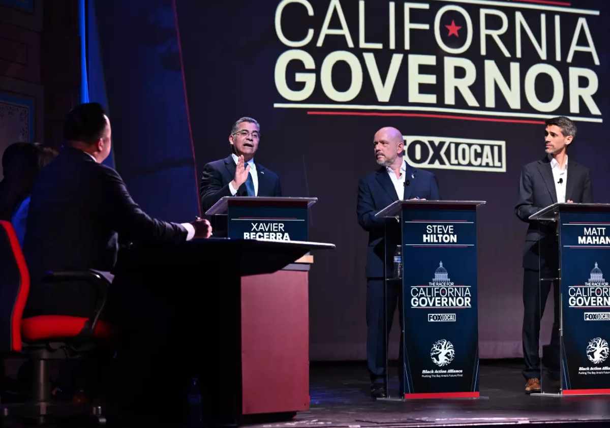 על הבמה עמדו כמה מהשמות הבולטים ביותר בפוליטיקה של המדינה: מלבד ויארגוסה, השתתפו גם מזכיר הבריאות לשעבר בממשל ביידן חאבייר בסרה, המיליארדר והפעיל הסביבתי טום סטייר, ראש עיריית סן חוזה מאט מאהן, מבקרת המדינה לשעבר בטי יי, ומפקח מערכת החינוך הציבורית טוני תורמונד. לצדם הופיע המועמד הרפובליקני - סטיב הילטון, לשעבר יועץ פוליטי ומגיש ברשת פוקס ניוז.