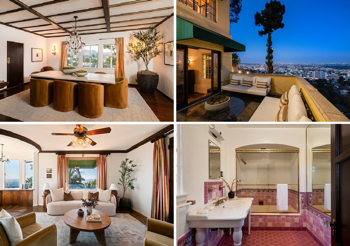 מהמרפסות והחלונות נשקף נוף פנורמי של לוס אנג’לס, כולל מצפה הכוכבים גריפית’ ושלט הוליווד האייקוני. האורחים במסיבות יכלו לצאת לפטיו מקורה שמתחבר לחצר האחורית וליהנות מהנוף, לצד בר קטן בסלון שמוקם בדיוק ליד החלון – כדי שלא לפספס אף רגע.