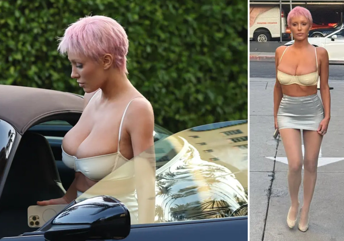 גם הבגדים לא נשארו מאחור. או שדווקא כן? לסיבוב בעיר היא יצאה כשהיא לובשת חזייה כחולצה וחצאית מיני-מיקרו קצרה במיוחד. מתחת היא שילבה גרביון לבן ונעלי עקב מחודדות עשויות רשת - לוק שממשיך את הקו הפרובוקטיבי שמזוהה איתה כבר כמה שנים טובות.
