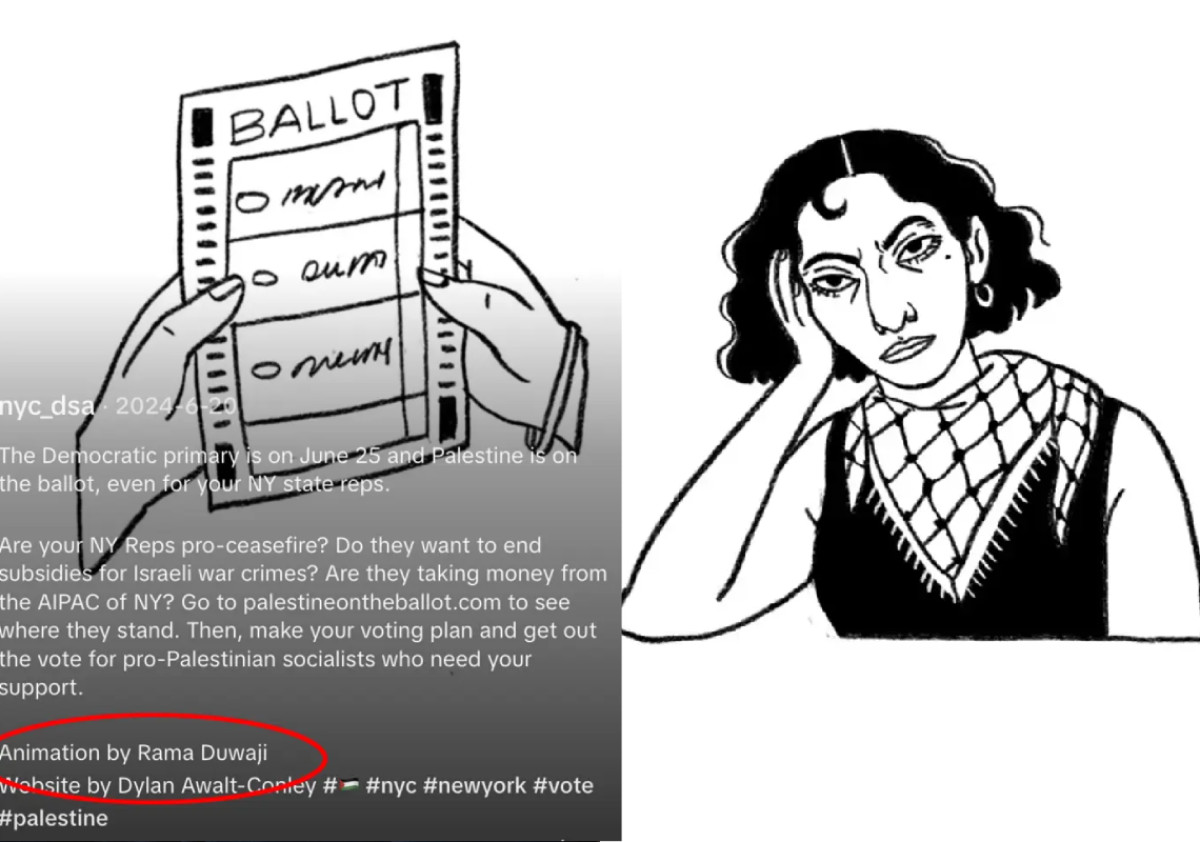 מהאיורים של ראמה דואג'י עבור קמפיין פריימריז אנטי-שיראלי