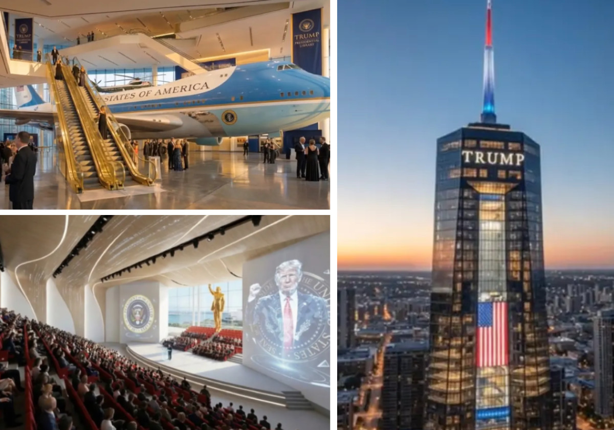 הסרטון, שפורסם ברשת החברתית של טראמפ, מציג מגדל זכוכית עצום הנושא את שמו ואת דגל ארצות הברית. לפי התיאור, מדובר ב"דונלד ג'יי טראמפ - ספרייה ומוזיאון נשיאותיים" - מתחם רחב ידיים על קו המים של מיאמי, שמבליט סגנון ראוותני עם שימוש כבד בזהב, תאורה דרמטית ואולמות שיש רחבים לתערוכות ואירועים.