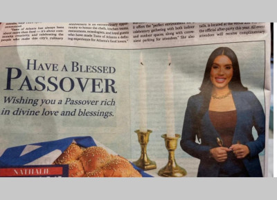 המטרה הייתה ברורה: לפנות לקהילה היהודית בפולטון קאונטי באמצעות מודעת ברכה לחג הפסח בעיתון "אטלנטה ג'ואיש טיימס". הכיתוב היה סטנדרטי — ברכה לחג מלא אהבה וברכות. אך לצד המילים הופיעה תמונה אחת — שהפכה את הכול.